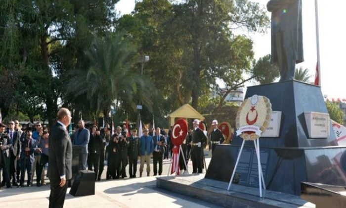 “En büyük eserim dediğiniz Türkiye Cumhuriyeti’nin yardım ve desteğiyle haklı ve kutsal mücadelemize devam ederken, ‘kahraman’ olarak nitelendirdiğiniz Türk ordusunun koruması ve güvencesinde kendi vatanımızda kendi devletimizin çatısı altında hür ve korkusuz olarak yaşıyoruz. Manevi huzurunuzda bir kez daha söz veriyoruz; her ne pahasına olursa olsun Anavatan Türkiye’nin garantörlüğü ile Türk askerinden asla vazgeçmeyeceğiz. Tek dişi kalmış canavar üzerimize gelse de devletimizi, özgürlüğümüzü, egemenliğimizi ayaklar altında çiğnetmeyeceğiz Ruhunuz şad olsun.”