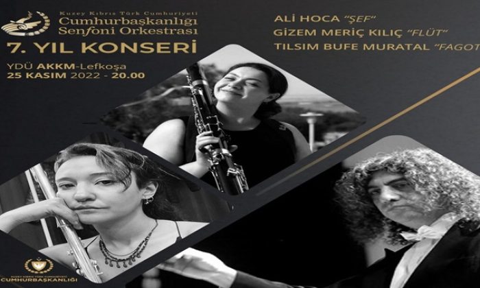 KKTC Cumhurbaşkanlığı Senfoni Orkestrası, kuruluşunun 7. yılında 25 Kasım 2022 tarihinde Gizem Meriç Kılıç (flüt), Tılsım Bufe Muratal (fagot) solistliğinde ve Şef Ali Hoca yönetiminde konser gerçekleştirecek.